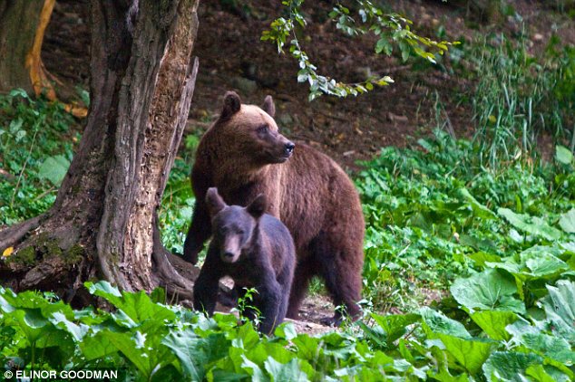 Travelling club class: Elinor spotted these wild bears in the woods