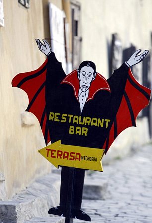 Fancy a bite? A Dracula sign in Sighisoara